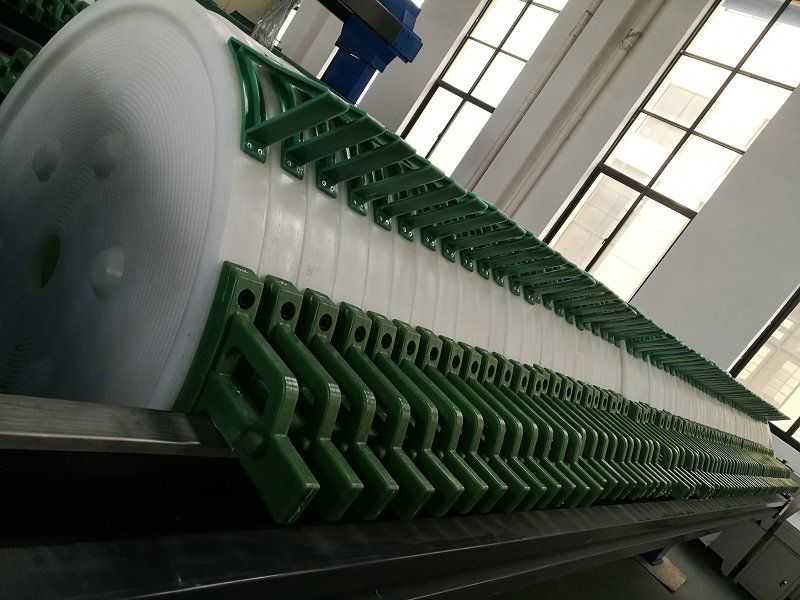 我公司研制的園板壓濾機,濾速快,抗壓強度大,最大過濾壓力達到1.6-2.0MPa;濾板材質為高強度高韌性聚乙烯材質;高分子,高壓力壓濾機,濾室采用線形密封,密封性好,耐高壓。